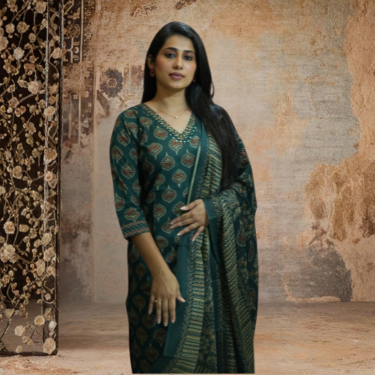 This outfit is ideal for celebrations, festive lunches, daytime events, and elegant ethnic styling.