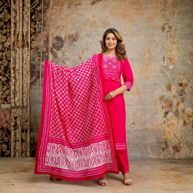 Rani Pink Embroidered Kurta Set with Dupatta