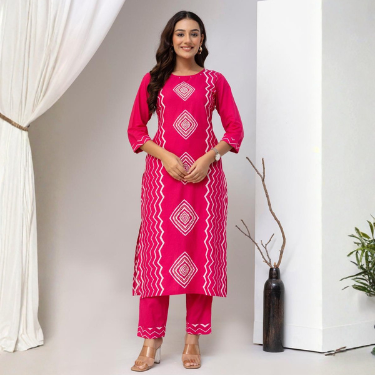 Bright, stylish, and effortlessly comfortable—this Pink/Black Geometric Printed Cotton Kurta Set is designed for women who love chic ethnic wear with a modern twist. Crafted using premium breathable cotton, the outfit keeps you cool and comfortable throughout the day.