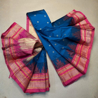 Step into timeless elegance with this exquisite Ilkal Temple Butta Saree, designed with the cultural richness of Karnataka’s weaving heritage.