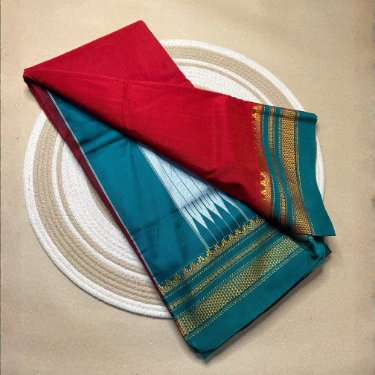 Step into timeless elegance with this exquisite Ilkal Temple Butta Saree, designed with the cultural richness of Karnataka’s weaving heritage.