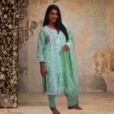 This outfit is ideal for celebrations, festive lunches, daytime events, and elegant ethnic styling.